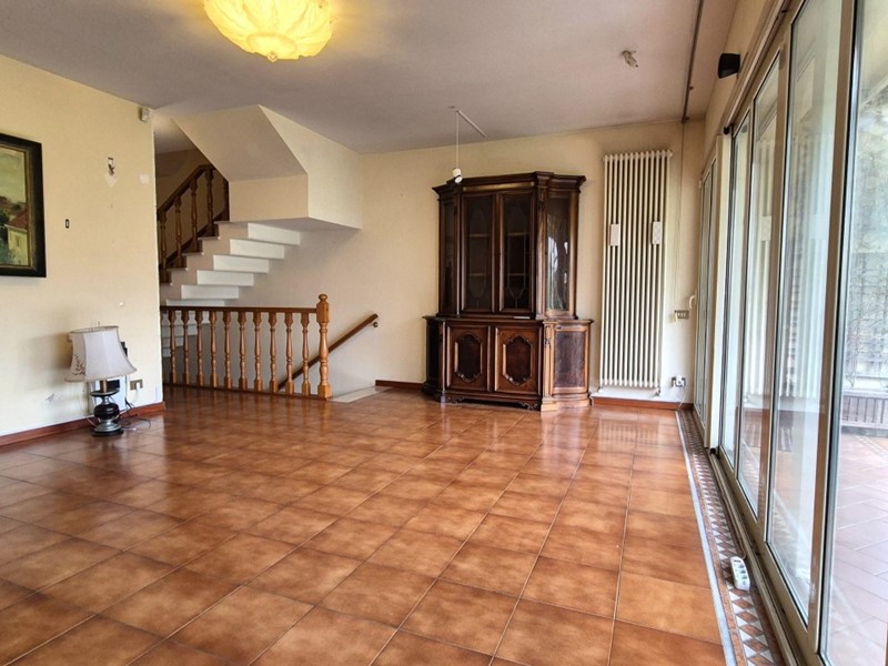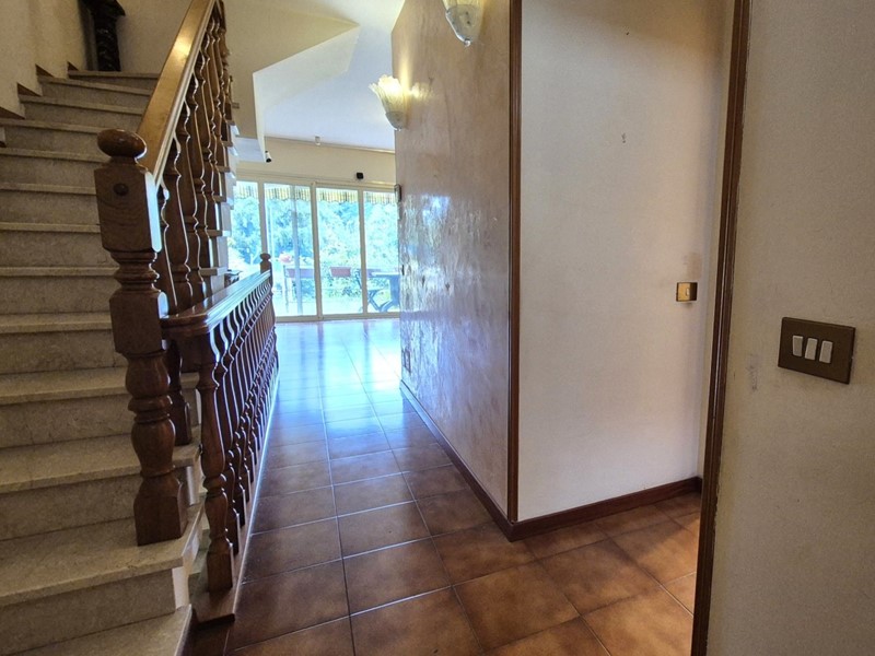 In zona residenziale tranquilla proponiamo villa a schiera su più livelli con ingresso al piano rialzato. Al piano rialzato troviamo un disimpegno d' ingresso, cucina abitabile con dispensa finestrata, bagno finestrato con doccia, grande salone molto luminoso grazie ad una grande vetrata che da su un terrazzo cui si accede al giardino. Tramite scala interna si accede al piano seminterrato dove troviamo una grande taverna con cucina perfetta per le cene con gli amici, camino e locale tecnico con caldaia. Al primo piano troviamo due camere matrimoniali una con accesso su u grande terrazzo coperto e una con piccolo terrazzino. Al secondo piano mansardato troviamo un locale uso ripostiglio. La casa è dotata di aria condizionata. A pochi metri dall' abitazione c'è un grande parcheggio pubblico