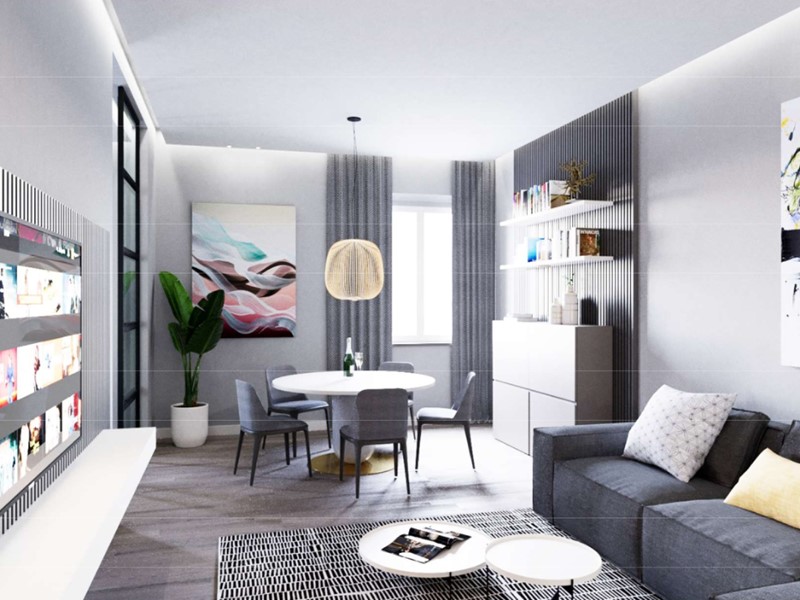 Secondo un progetto facilmente realizzabile che è stato redatto a titolo esemplificativo, l’appartamento sarà costituito da ingresso/disimpegno, soggiorno/pranzo, cucina abitabile, camera da letto, bagno, camera da letto padronale dotata di cabina armadio e bagno proprio, ripostiglio/lavanderia.