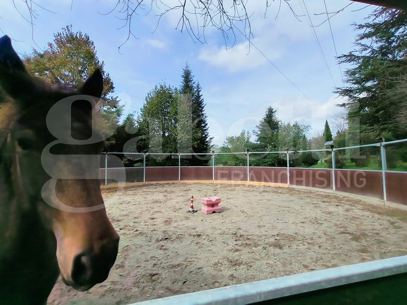 Sasso Marconi, proponiamo centro ippico/maneggio con scuderia e terreno di 11 ettari. La proprietà si trova a soli 3 km da casello autostradale in posizione strategica e facilmente raggiungibile con qualsiasi mezzo. E' composta da una scuderia di circa 600 metri con 18 Box, uno spogliatoio, due bagni, la selleria ed il deposito per il mangime. L'attività dispone inoltre di due tondini (di cui uno coperto), una club house, ed una piccola casettina indipendente con sala angolo cottura, due camere e bagno. Nella proprietà troviamo una sorgente di acqua che fornisce tutto il maneggio oltre ad essere allacciata all'acqua dell'acquedotto. ? 420000,00 Rif. C1448JW