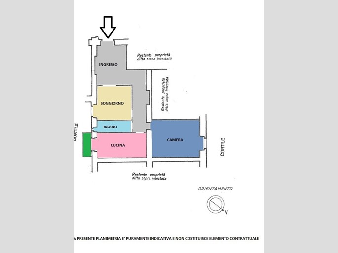 L'immobile, la cui disposizione interna può essere modificata in fase di ristrutturazione, è composto da ampio ingresso, soggiorno, camera, cucina abitabile, bagno e balcone. E' possibile ricavare una seconda camera e un secondo bagno.