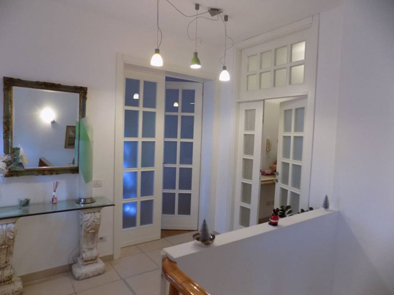 Dal disimpegno alle fine delle scale si accede sia alla zona pranzo con cucina a vista e tinello oltre ad un bagno di servizio. Dal tinello si accede poi ad un terrazzo che può essere utilizzato in estate per le cene al fresco ed alla brezza di cui questo appartamento collinare gode.