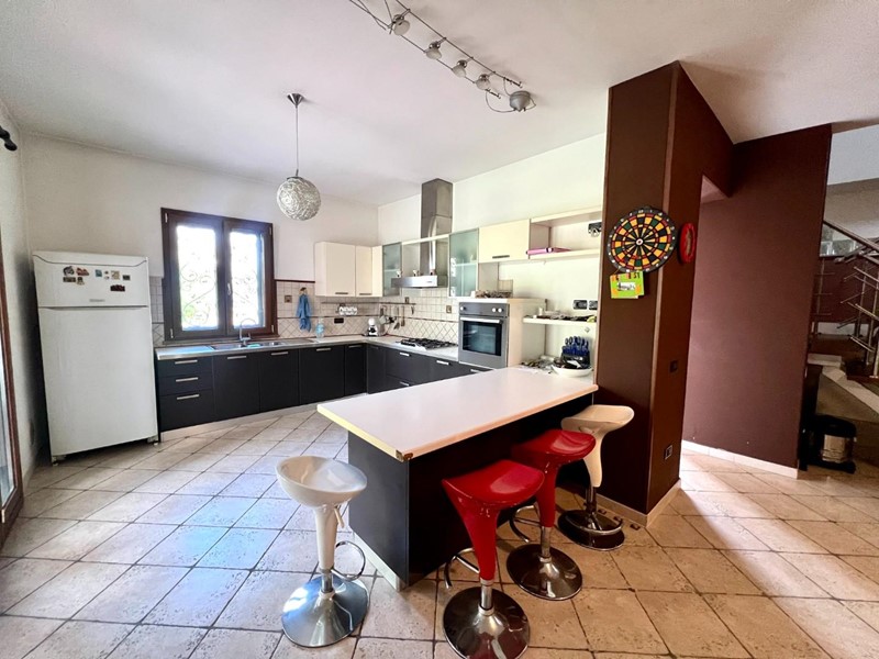 Al piano terreno la villetta si compone di ingresso, ampia zona living in open space con la cucina e l'accesso al bellissimo giardino di oltre 400 mq. ideale per momenti conviviali e dove far giocare i propri figli; un locale lavanderia, un disimpegno che porta al bagno, un locale studio ed una camera matrimoniale utilizzabile come ulteriore spazio.
