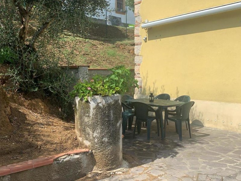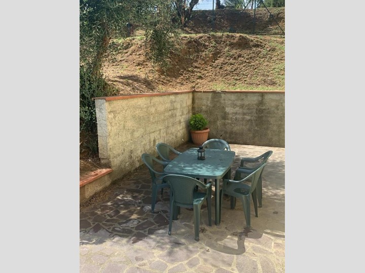 Terreno con piante di ulivi in parte adibito a giardino , corte esterna piastrellata in sasso e attrezzata. con tenda, tavolo e sedie per pranzare all'esterno. Completa di arredi, cucina nuova e tutto in ottime condizioni. La casa può ospitare comodamente 4 persone, i letti sono singoli.