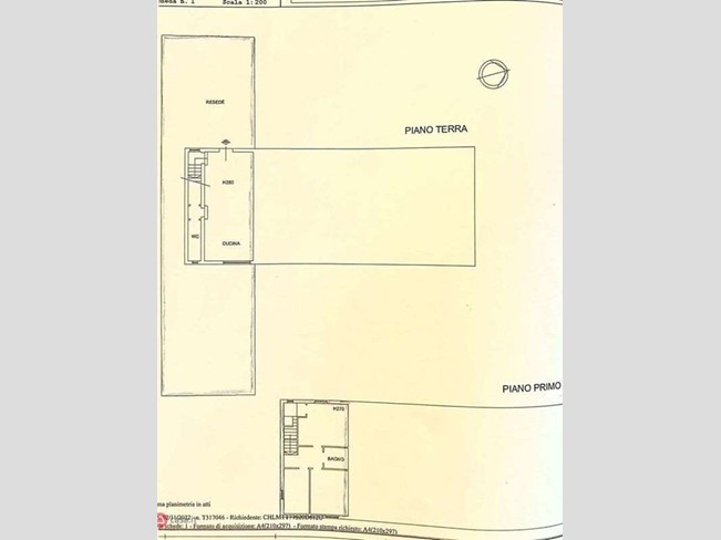 PIANO PRIMO: camera matrimoniale frontale con vista aperta, seconda camera matrimoniale con vista sul giardino tergale, camera singola;