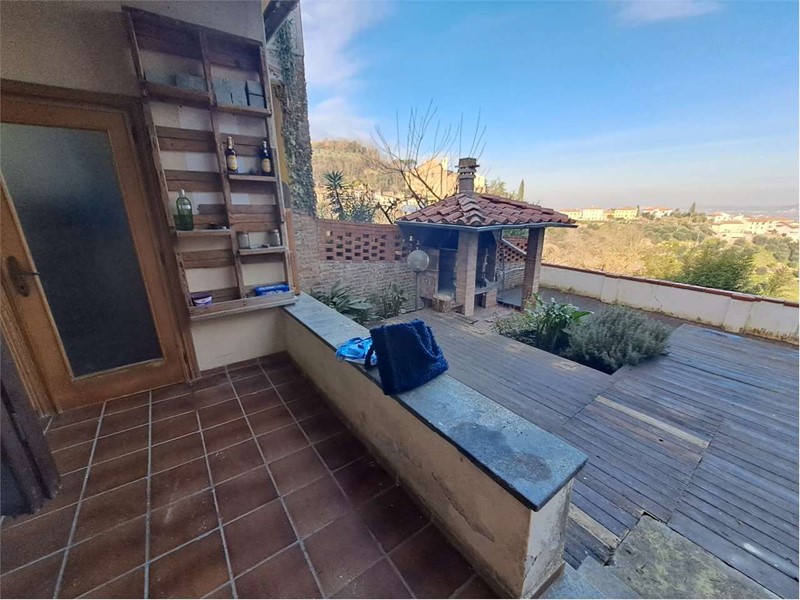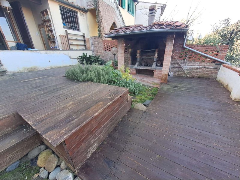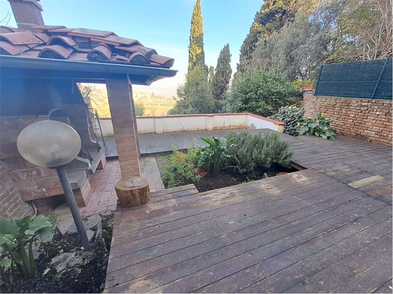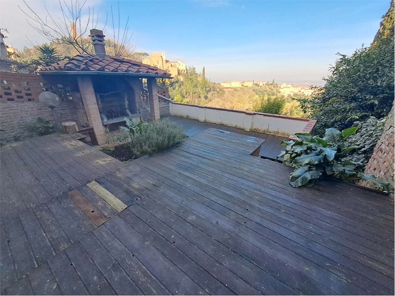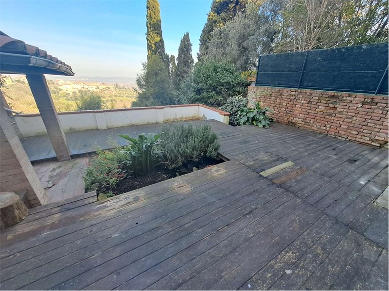 San Miniato alto, ampio terratetto con giardino privato di 900 mq, disposto su tre livelli, al piano terra ingresso in loggiato, proseguendo, disimpegno, soggiorno doppio con angolo cottura e camino, dispensa e accesso diretto al giardino. Infine locale tecnico e bagno di servizio. Al piano primo 4 camere da letto ognuna con il suo bagno privato. ampio disimpegno che porta al secondo piano dove troviamo altre 3 camere da letto ognuna con bagno privato. L'iimobile è tenuto in buono stato di manutenzione, gode di una splendida vista panoramica e per le grandi metrature oltre che per la configurazione si presta anche a struttura ricettiva. Adatto anche per due famiglie. Completa la proprietà un garage di 30 mq, posti auto in tutto sono tre. Codice annuncio V1043 per info chiamare il