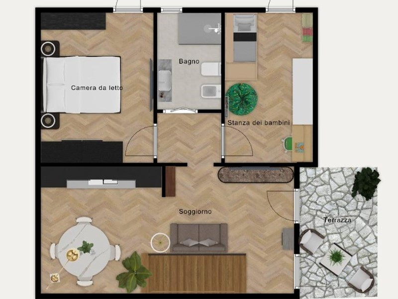 L'appartamento è in fase di costruzione e offre spazi ampi e luminosi, con una distribuzione dei locali che permette di sfruttare al meglio ogni centimetro quadrato. La zona giorno è composta da un soggiorno e una cucina abitabile, mentre la zona notte offre 2 camere da letto e il bagno.