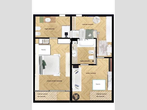 Una grande mansarda può divenire il jolly di tutta la casa dando spazio ad una camera con bagno e studio oppure ad un importante soggiorno con bagno ma anche ad una sala hobby o ospiti