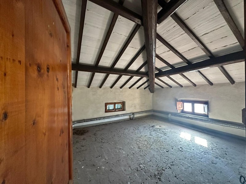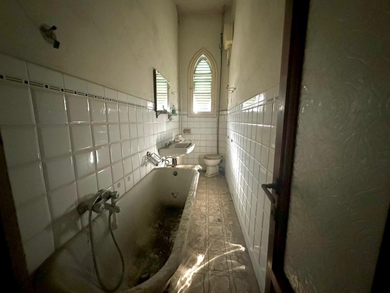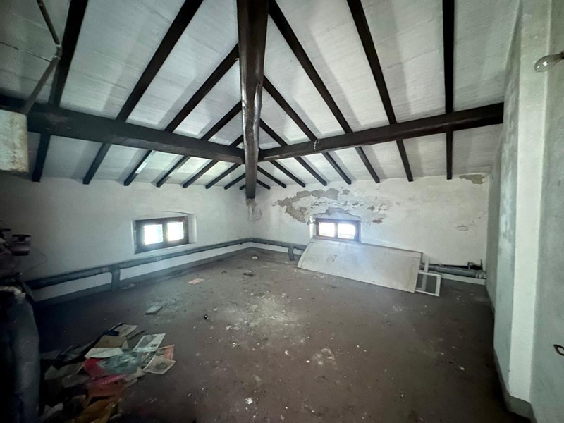 intorno alle quali sono ricavati due vani di servizio, un ripostiglio e un locale wc; sempre a piano terra, le due porzioni laterali sono occupate da quattro vani adibiti a cucina, pranzo e due ambienti di soggiorno. Al Piano Primo, si trovano un disimpegno, quattro ampie camere, una cameretta, un locale wc posto a fianco del vano scala. Quest'ultima conduce al terrazzo soprastante il mezzanino e, successivamente, al Piano Sottotetto, composto da quattro grandi ambienti e da ampio vano aperto posto di fronte allo sbarco delle scale; a fianco di queste si trova lo spazio dedicato alla vecchia caldaia per l'impianto di riscaldamento e a una cisterna per l'acqua. L'edificio è dotato di ampia resede esclusiva di circa 705 mq, destinata a giardino, oggi incolto, accessibile mediante un cancello carrabile, che dal passo carrabile mediante una scala di nuova costruzione. La Villa versa oggi in stato di abbandono e pertanto sono necessari lavori di ristrutturazione che riguarderanno strutture, impianti, infissi ecc.