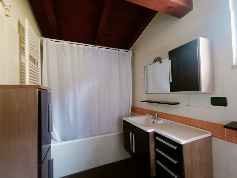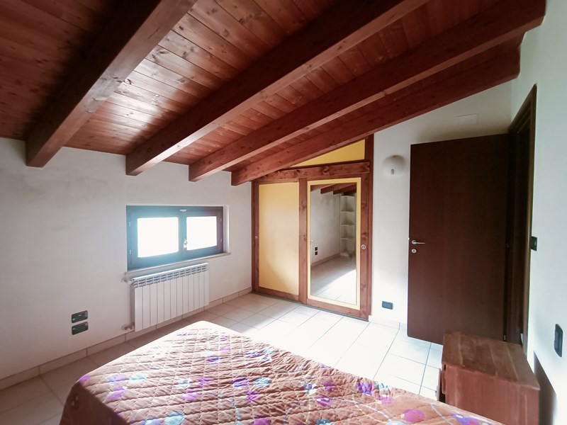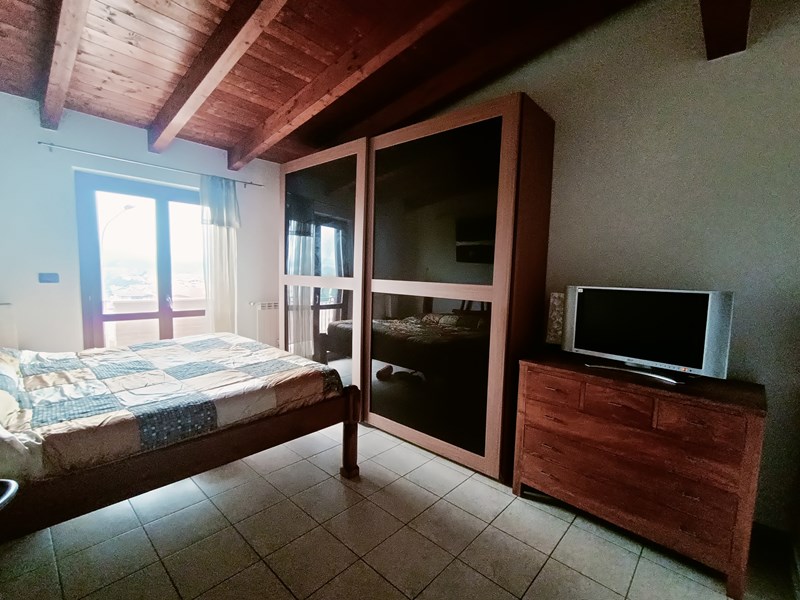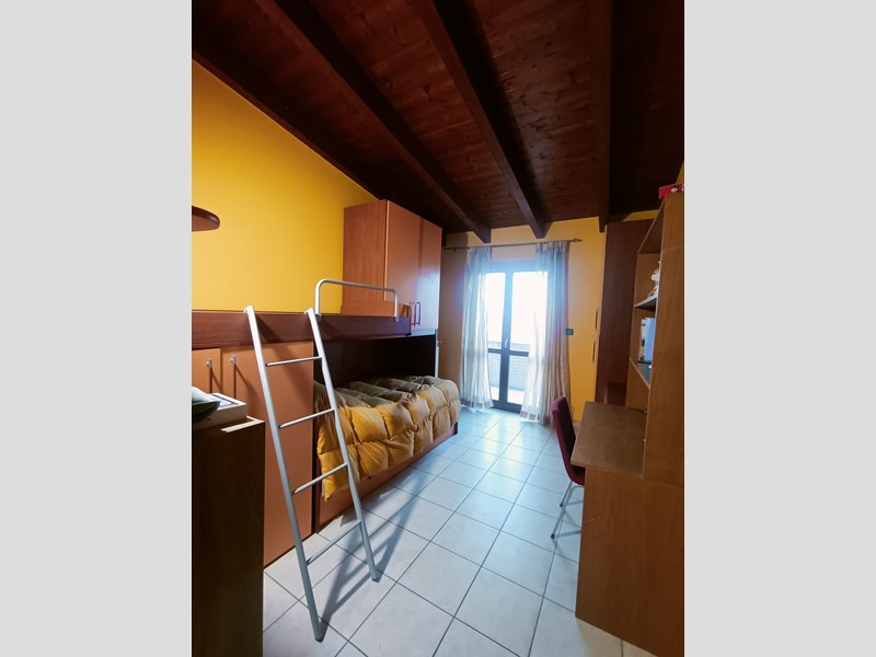 Piano notte mansardato (altezza min.2 mt) con tetto in legno lamellare: 3 grandi camere, di cui una dotata di cabina armadio su misura, bagno e ampio balcone comune a due camere. Da qui si può godere di una ampia visuale che va dal Gran Sasso al mare.