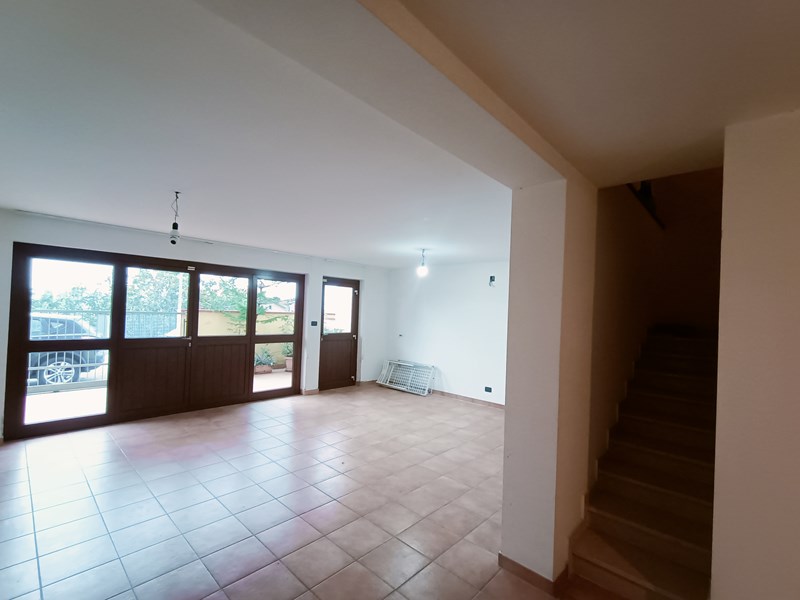 piano terra: ingresso autonomo, ampio cortile con cancello carrabile e cancelletto pedonale, garage, taverna, bagno da completare e ripostiglio. Scala sia interna che esterna che porta al piano superiore: