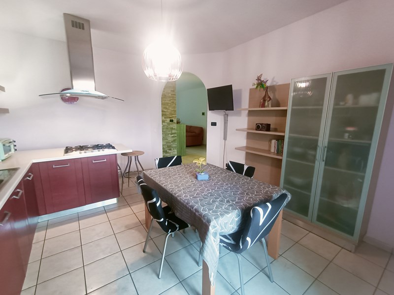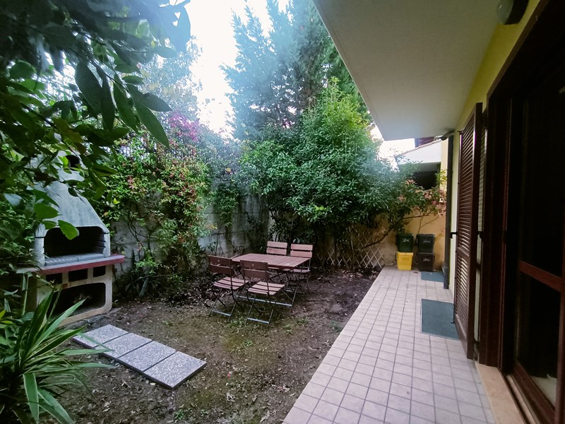 Primo piano: ingresso, disimpegno, ripostiglio, bagno, balcone fronte strada, cucina abitabile e ampio soggiorno con accesso al giardino retrostante di circa 40 mq, riservato, perfetto per serate in compagnia o semplicemente per godere di momenti di relax, dotato di barbecue in muratura.