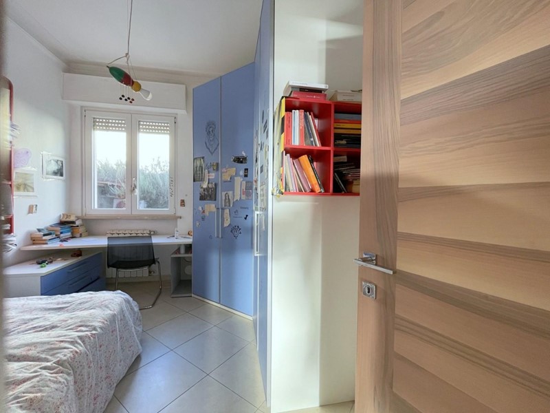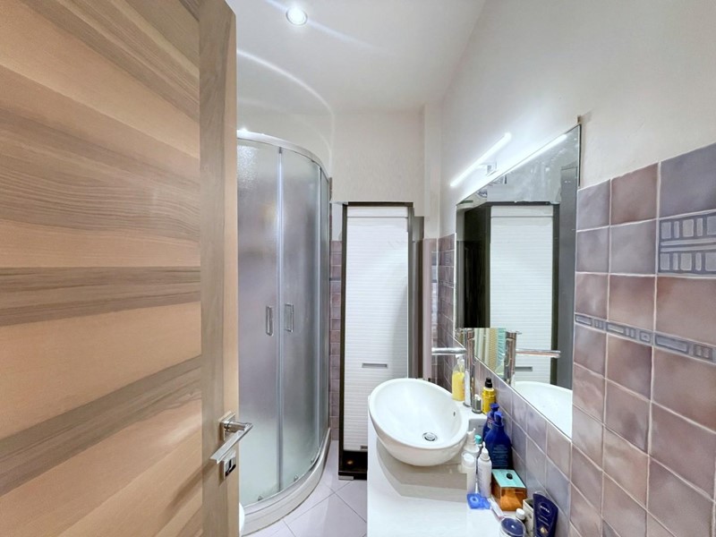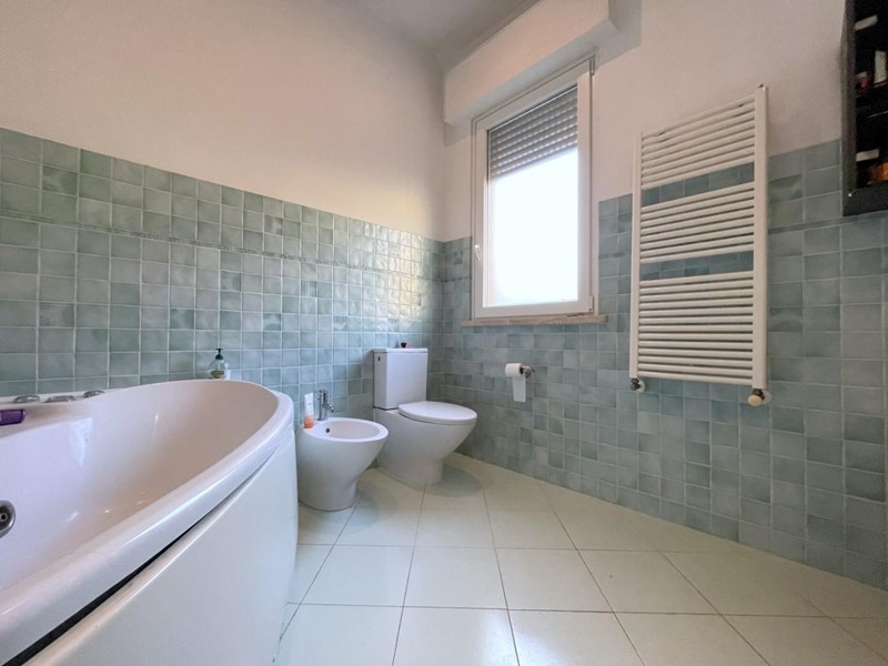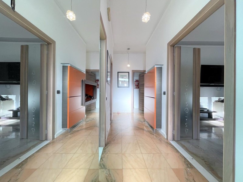 Percorrendo il disimpegno si accede alla zona notte, composta da tre camere da letto: due spaziose camere matrimoniali e una camera singola, tutte pensate per garantire comfort e privacy. La casa è dotata di due bagni, uno con doccia e uno con vasca idromassaggio, offrendo soluzioni adatte a ogni esigenza.