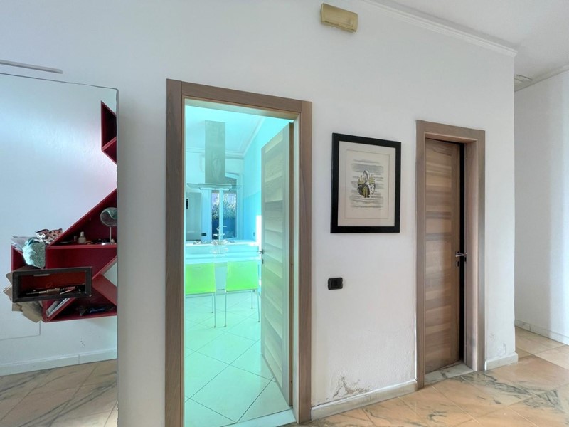 All'ingresso, il disimpegno ci accoglie e introduce, sulla destra, a un ampio soggiorno luminoso con porta-finestra che si apre direttamente sul giardino, creando un piacevole collegamento con l'esterno. Sulla sinistra troviamo una cucina abitabile dotata di camino, perfetta per chi ama i momenti di convivialità in un ambiente accogliente.