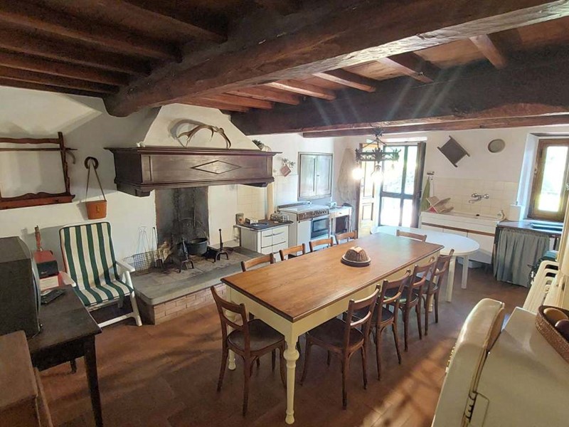 L'immobile, nel suo complesso, si presenta in buone condizioni ed è accessoriato di locale cantina, sempre comoda in campagna, giardino privato ampio a un passo da casa, posto auto e ulteriore terreno staccato tra cui un ettaro circa di castagneto.