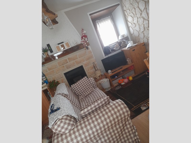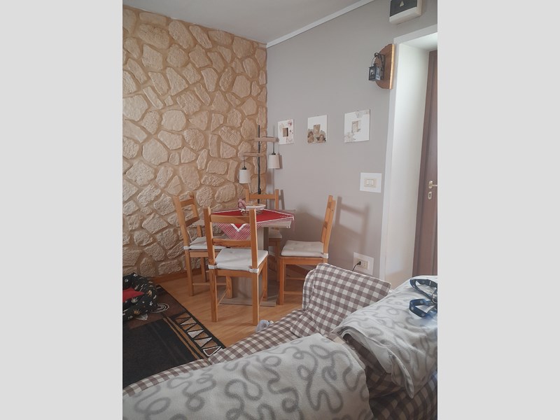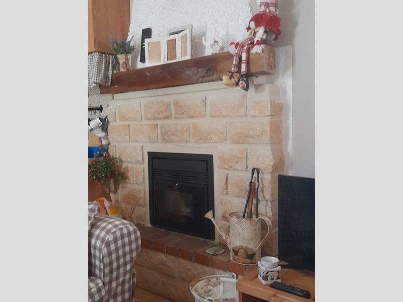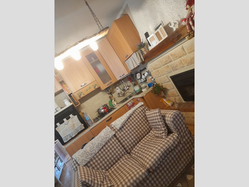 Ingresso, soggiorno openspace con angolo cottura ed un elegante camino a pellet certificato (installato 2023), piccolo corridoio, bagno con vasca e grande camera da letto matrimoniale