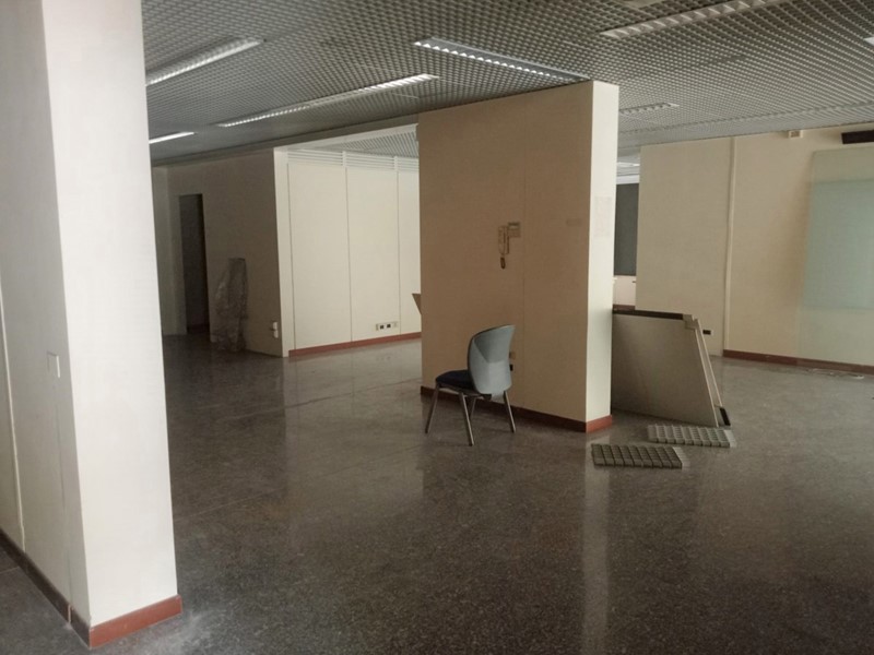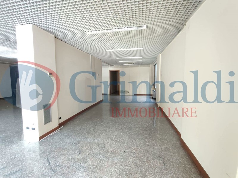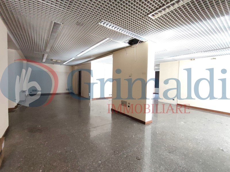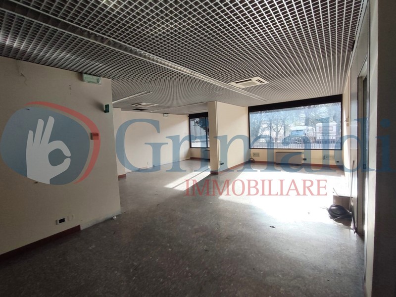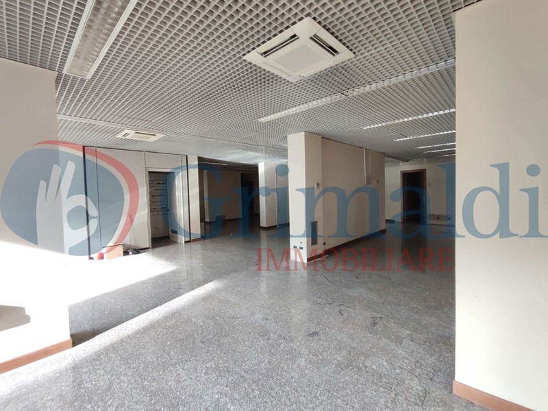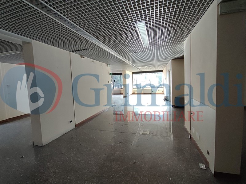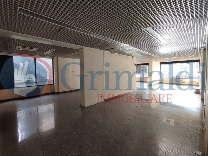 Il locale ha 2 vetrine che si affacciano sull'ampio parcheggio libero condominiale ed è attualmente suddiviso in un vano open space, 2 stanze ed un piccolo locale tecnico, un bagno con antibagno per una superficie di 236 mq ed è collegato ad un magazzino al piano seminterrato di circa 88 mq accessibile anche dall'esterno.