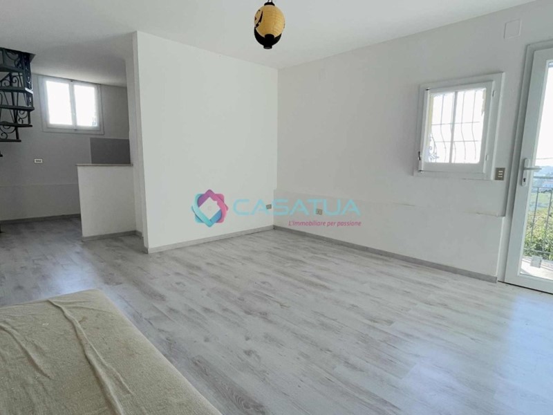 La proprietà è distribuita su due livelli; il piano terra è composto da un ampio soggiorno, una cucina funzionale ed un bagno finestrato. Al livello superiore accessibile da una scala interna, incontriamo: disimpegno, tre camere da letto una con bagno personale, un'altra con accesso al balcone vista mare ed una terza con terrazzino privato e accesso allo stesso balcone, garantendo una vista mozzafiato. Un ulteriore bagno finestrato con box doccia serve il secondo piano. Esternamente è presente una scala esterna che permette anche l'accesso diretto al secondo livello. La soluzione si completa di un' ampia rimessa al piano terra e di un terreno edificabile collegato all' edificio che offre ulteriori possibilità di ampliamento.