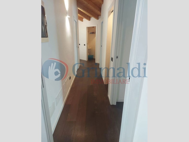 L'appartamento è così suddiviso: ingresso, ampia cucina abitabile, luminoso e spazioso salone con accesso al terrazzo di 17 mq, due camere da letto (di cui una con cabina armadio ed una con balcone di 11 mq), ulteriore spazio studio/camera, tripli servizi e lavanderia. Il comfort abitativo è garantito da: riscaldamento a pavimento, impianto di aria condizionata presente in tutta casa, infissi in triplo vetro. Caldaia di nuova generazione, installata nel 2024. Completa la proprietà un box singolo di 28 mq dove poter alloggiare comodamente un'autovettura e biciclette/moto/scooter.