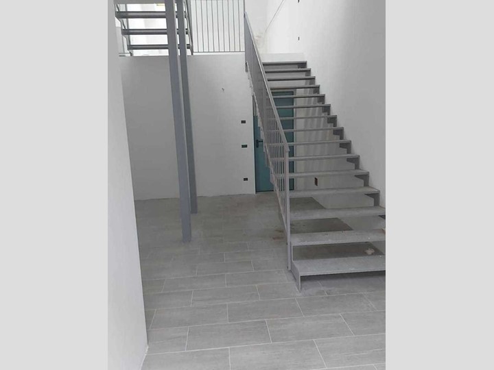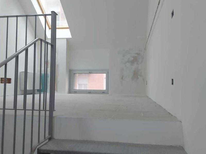 Questo spazioso monolocale di 70 mq è stato progettato per stupire: un unico ambiente che si eleva su due livelli, con pavimenti luminosi e lucernari che inondano di luce naturale il piano superiore.