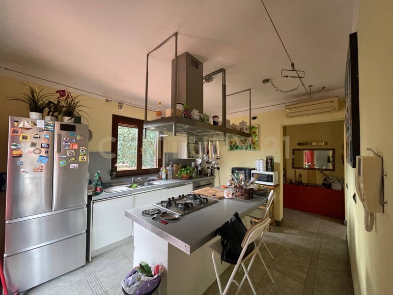 La casa offre un ampio salone luminoso, con ampie vetrate che si affacciano sul grande terrazzo dalla vista panoramica , segue una cucina abitabile composta da una penisola centrale, perfetta per preparare i pasti e godere di momenti conviviali in famiglia o con amici.