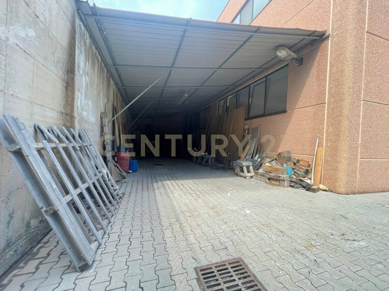 Il capannone si estende anche fuori con un altro ampio spazio di lavoro coperto e spazio esterno all’ingresso.