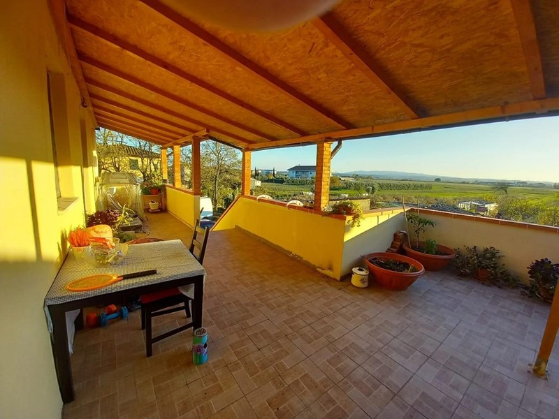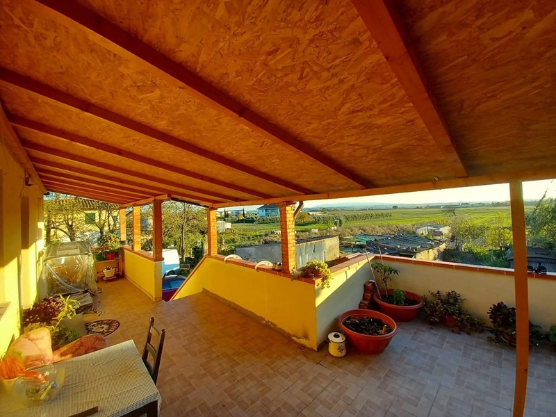 Pontedera (Gello) - Luminoso appartamento di circa 130 mq, ristrutturato nel 2021, posto al 1°piano con bellissima terrazza vista tramonto di circa 40 mq. Al p.terra ci sono circa 140 mq di fondi (C/2) sviluppati su 3 locali. Questa zona è completamente da ristrutturare. Conclude l’immobile un terreno distaccato dalla casa a 20 metri di distanza, esattamente oltre la corte condominiale, di circa 500 mq, nel quale poter sviluppare un orto di grandi dimensioni. Si accede all’appartamento da scala al p.terra che conduce alla stupenda terrazza al 1° piano, qui vi è l’ingresso nella grande sala di circa 45 mq, poi, attraverso un disimpegno, si accede alla zona notte composta da 3 camere da letto (di cui una di circa 30 mq con soffitto e pareti in legno perlinato, un bagno e un vano di passaggio. Si specifica che la ristrutturazione è stata completa ma senza il rifacimento del tetto in quanto in buono stato di manutenzione. Per quanto riguarda il riscaldamento attualmente è con la stufa a legna, si specifica che l’impianto di riscaldamento è presente compreso di caloriferi ed è stato realizzato nel 2021, quindi è praticamente nuovo, ma al momento non è allacciato, quindi deve essere tenuta in considerazione una spesa di circa 3.000 per l’allaccio. Aria condizionata in sala e in una camera da letto. Prezzo vendita € 300.000. Rif. W3891AQ