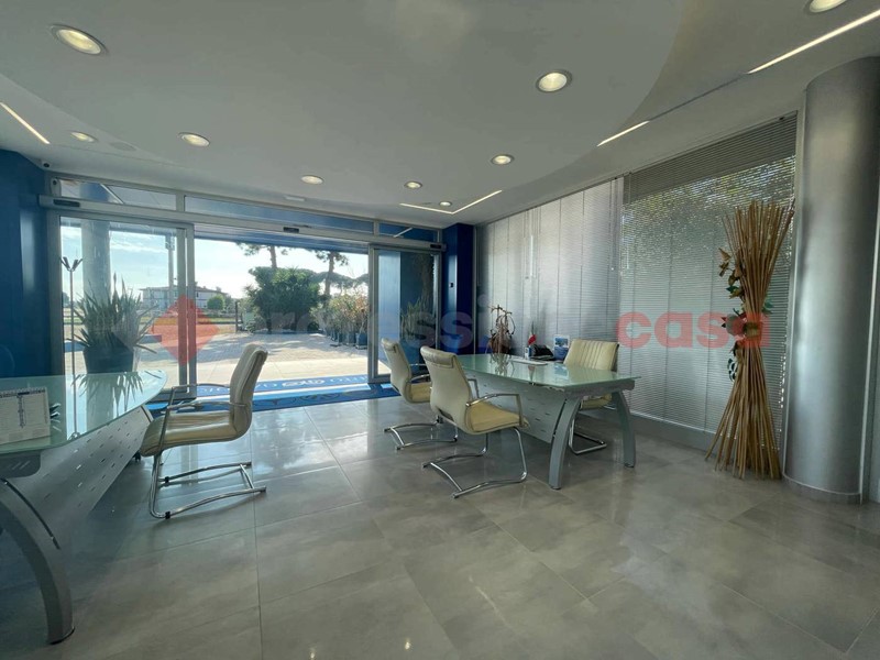 Questa struttura è particolarmente adatta a molteplici destinazioni d'uso, come uffici, showroom e/o allestimento di aree espositive e tanto altro. Completa la proprietà un seminterrato con ingresso dall'esterno, destinato a magazzino della superficie di mq. 100 c.a. A garantire la sicurezza dell'edificio, una rete di n. 16 telecamere sia interne che esterne, visionabili da remoto e un antifurto di ultima generazione su tutta la superficie con inserimento e disinserimento a distanza con app.