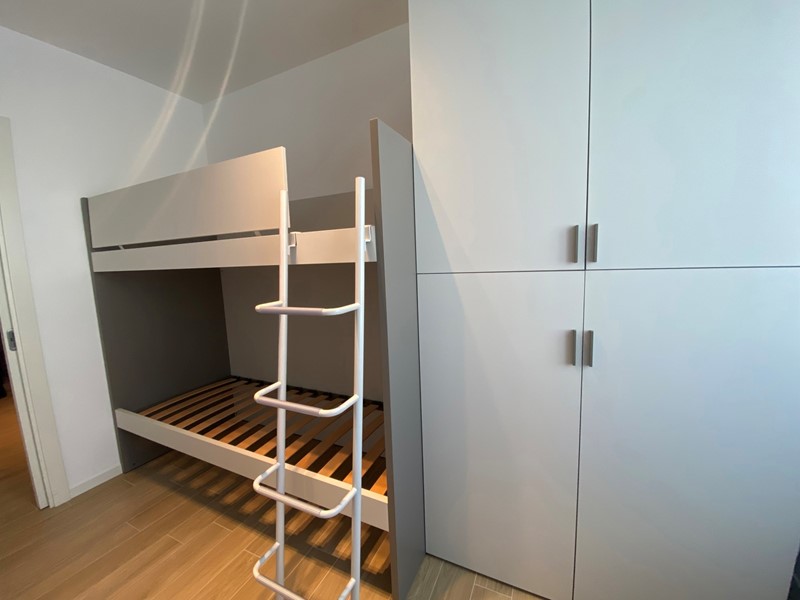 Zona notte formata da due camere da letto, di cui una matrimoniale, antibagno adibito anche a sgabuzzino con armadiatura a misura e bagno finestrato con doccia.