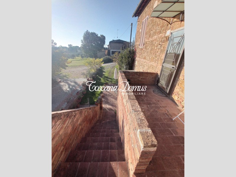 A Siena, in località Sant'Andrea a Montecchio, si propone in vendita una casa semi indipendente immersa nel verde della campagna Senese. La proprietà è disposta su due piani, salendo una rampa di scale in mattoni si raggiunge un terrazzo che permette l'accesso all'abitazione principale. Si entra in un gande salone molto accogliente con doppia finestra e salendo pochi scalini si accede all'ampia cucina, abitabile e ben distribuita servita inoltre da un grande locale ripostiglio e lavanderia. Considerata l'altezza sopra quest'ultima è stata creato un soppalco ideale come studio illuminato da lucernario. La zona notte è composta da una grande camera matrimoniale ed una seconda camera soppalcata attualmente adibita a grande cabina armadio e studio nel piano superiore. I bagni sono due uno molto spazioso con porta finestra ed uno più piccolo ma completo. Al piano inferiore si trovano una serie di fondi che si stendono per tutta la dimensione dell'appartamento ed oltre raggiungendo i 240 mq, in particolare due ambienti sono molto grandi accessibili da un immenso portone. I fondi sono da ristrutturare ma hanno grande fascino oltre che un enorme potenziale di utilizzo. Intorno alla proprietà gira un giardino di circa 400 mq, una parte della quale è piastrellato a mattoni. Non ci sono spese condominiali e le utenze sono indipendenti. L'alloggio principale è stato ristrutturato di recente cosi come il tetto. L'esposizione è perfetta e la casa è illuminata dall'alba al tramonto. La vista è incantevole sulla campagna circostante.