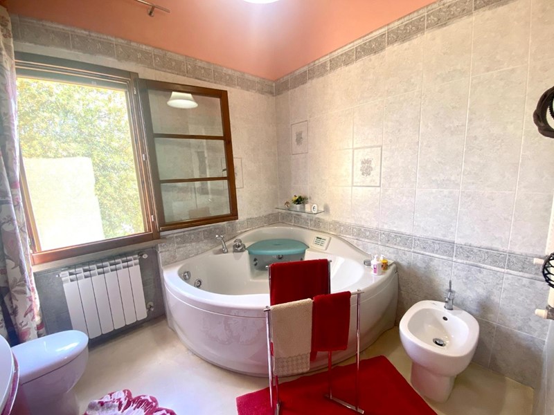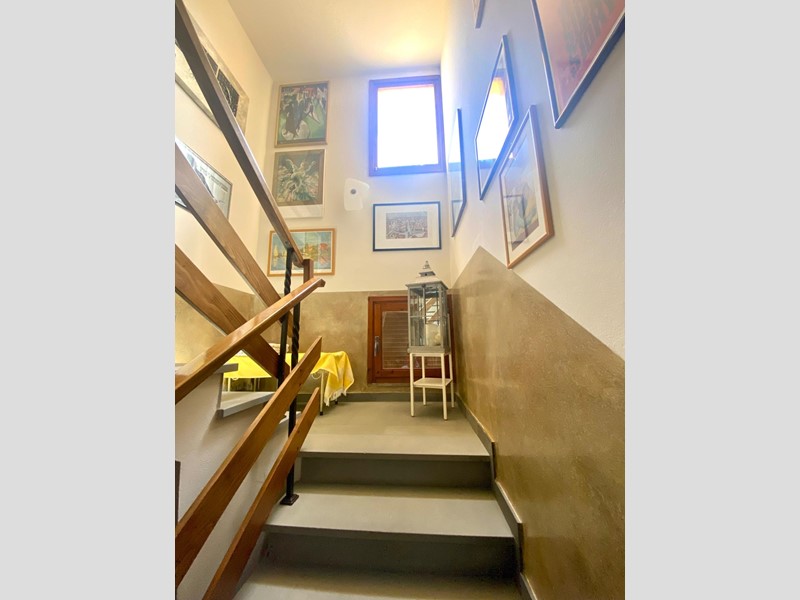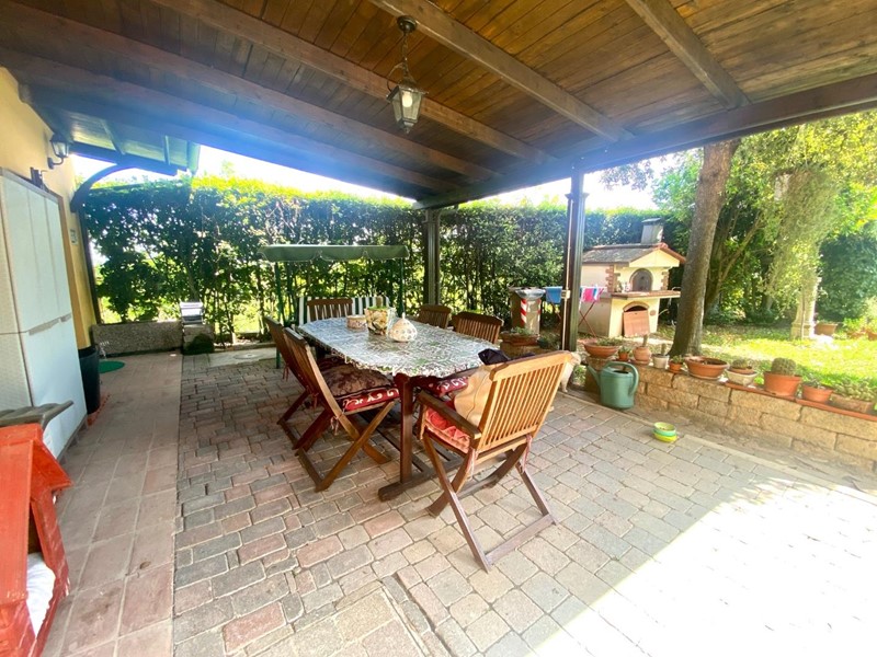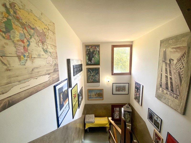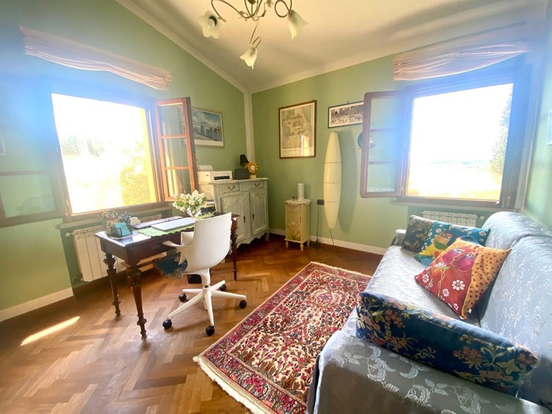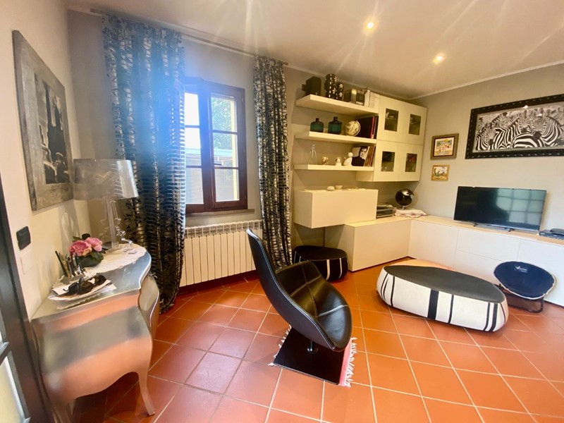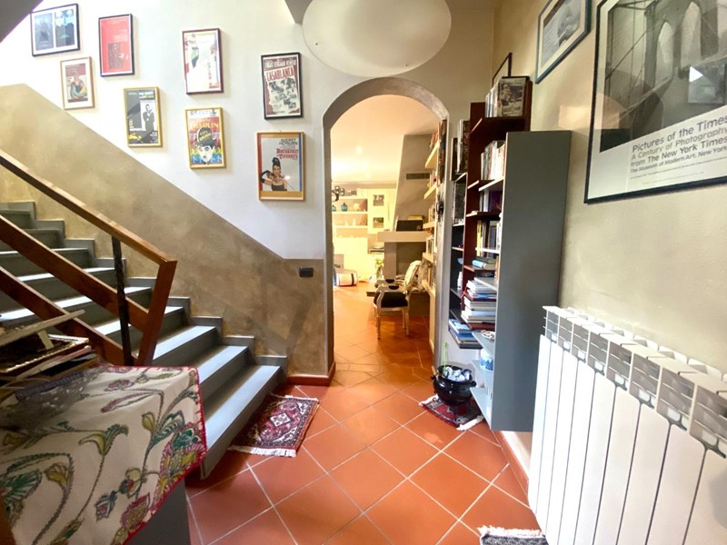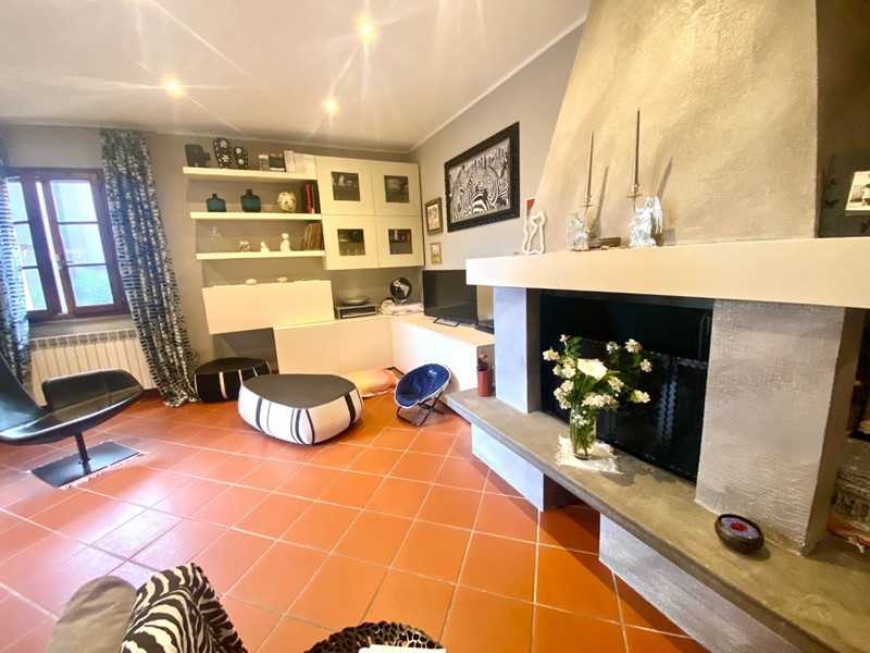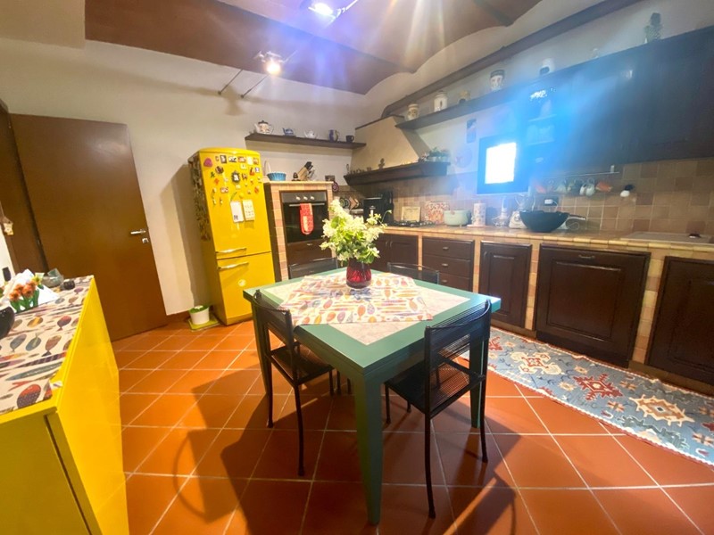 L'immobile deriva da una ristrutturazione degli anni 2000, è composto al piano terra da soggiorno molto luminoso con camino, bagno finestrato con doccia, zona pranzo con cucina in muratura e porta finestra con accesso al giardino , ideale per cenare all'aperto le sere d'estate, e piccolo ripostiglio. Al piano primo al quale si accede mediante un'elegante scala in pietra serena, troviamo il reparto notte.Nel reparto notte è presente il parquet in ogni stanza, due camere matrimoniali con bellissimo affaccio sulla campagna circostante, un soppalco, un armadio a muro con all'interno la caldaia, il secondo bagno con vasca idromassaggio e pavimento in resina e un delizioso e romantico studio. Dal giardino si accede al garage al piano seminterrato di circa 17 mq.