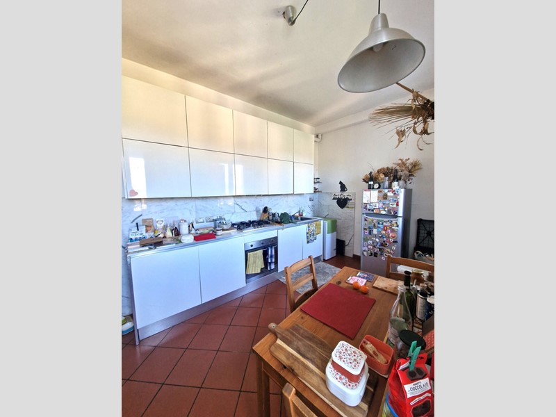 Adiacente al soggiorno si trova un pratico ripostiglio, mentre la cucina abitabile, anch'essa dotata di due finestre, offre uno spazio comodo e funzionale. La zona notte si compone di due camere matrimoniali, di cui una con bagno privato. Completa la distribuzione un secondo bagno, che serve sia la zona giorno che la seconda camera.