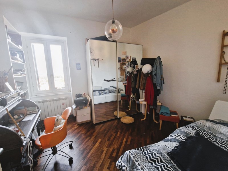 L'appartamento conserva dettagli storici, le travi a vista e il camino, che aggiungono fascino e unicità a un'abitazione che coniuga perfettamente la funzionalità moderna con il carattere di una dimora d'epoca.