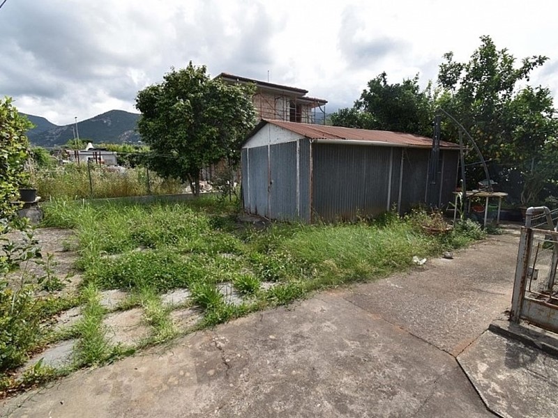 LD IMMOBILIARE propone in vendita Porzione di bifamiliare in vendita con ingresso pedonale e carrabile, giardino su due lati dove insiste un box condonato. L'immobile si sviluppa su due livelli oltre a piano scantinato e risulta cosi composto; al piano terra troviamo ampio vano d' ingresso, ulteriore vano da adibire a sala camera studio, tinello-salotto, cucina abitabile e servizio con doccia; al piano primo disimpegno con balcone, 2 camere matrimoniali, 2 camere singole e servizio vasca. Al piano seminterrato vano pavimentato ad uso cantina.