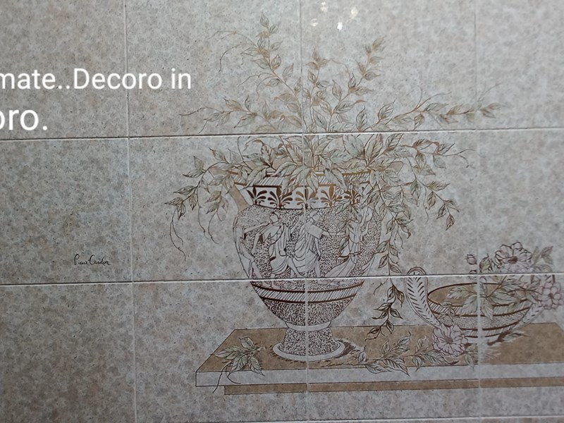 2bagni con piastrelle firmate Pierre Cardin con lavorazione in oro sui decori floreali e greca su tutta la circonferenza dei bagni, sanitari Idealstandard: n.1bagno con vasca idromassaggio Teuco;n. 2 bagno con piatto doccia.