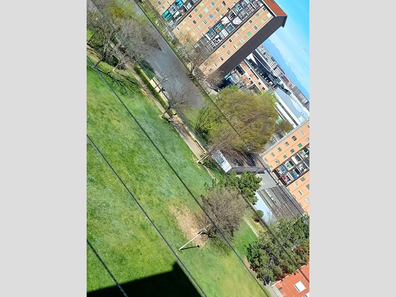 2 terrazzi: 1verandato con porte finestre sopra/sotto condonato e vetri scuri nella parte sotto,veneziane all'interno dei vetri nella parte sopra. Secondo terrazzo tendone 4 stagioni pioggia/sole con montanti laterali + copertura tenda sole sulla ringhiera.