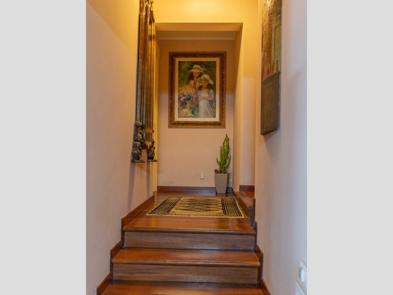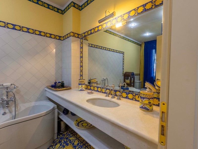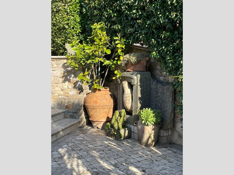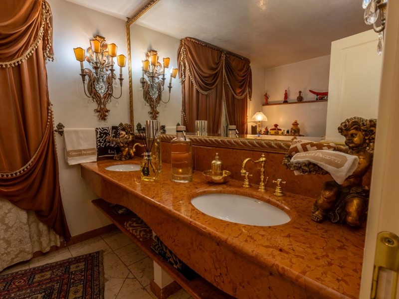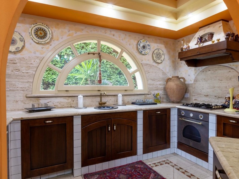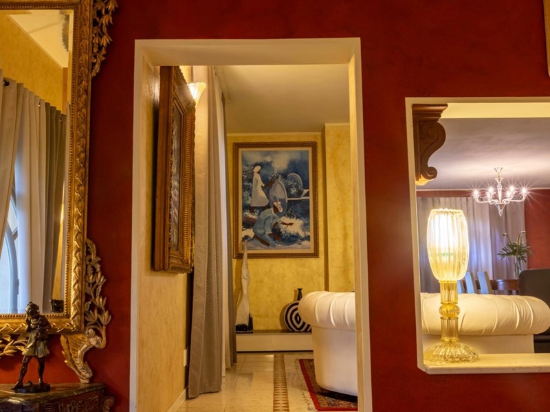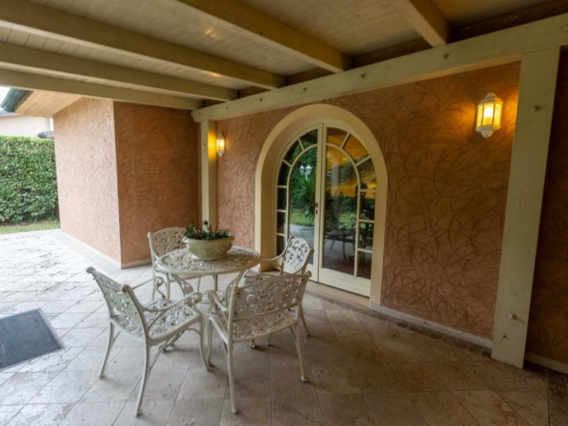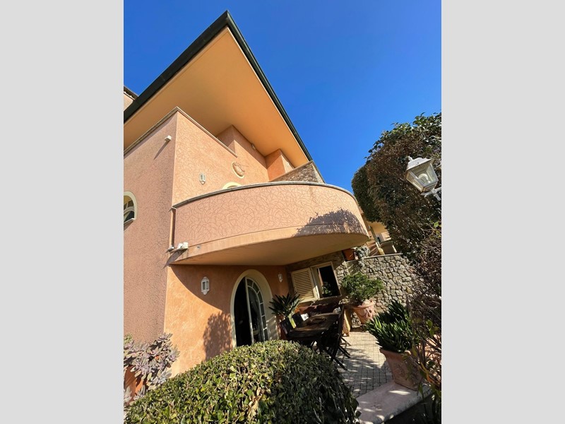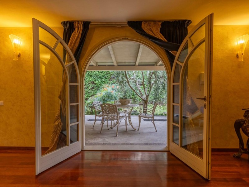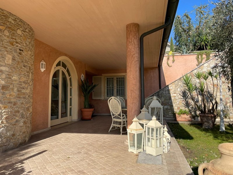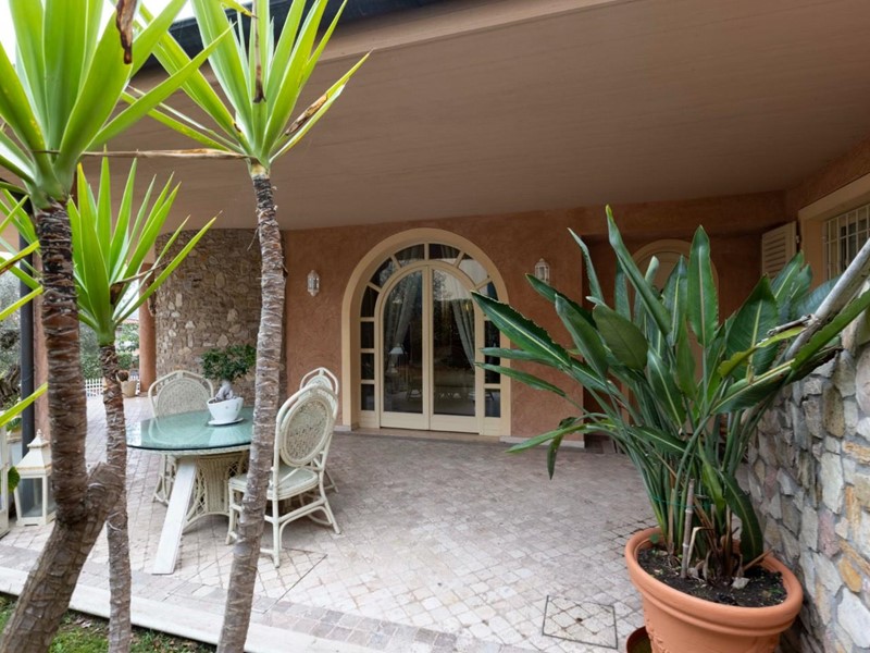 La villa è in ottimo stato, con ambienti curatissimi, ed offre, al piano terra (210 mq. circa), ampi spazi living aperti sul giardino e sotto una loggia, con un ingresso/soggiorno in parte a doppio volume, con caminetto e soffitto decorato, salotto/pranzo, cucina, disimpegno, due bagni e camera da letto. Il piano superiore (140 mq. circa), pavimentato a parquet, ospita altre tre camere da letto ed altrettanti bagni. Mansarda con terrazzo. di 20 mq. Al piano seminterrato (285 mq. circa compresi i garage) è stata ricavata una spaziosa taverna, anch’essa aperta sul giardino, caratterizzata dalla presenza di un grande camino in pietra, oltre a bagno e locali di sgombero. La villa è predisposta già con vano ascensore, non è installato l'apparecchio.