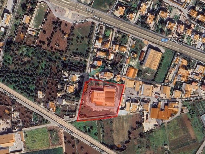 Proponiamo in vendita un capannone industriale, da ristrutturare, di circa 2.150 mq coperti, comprensivi di un’area dedicata ad uffici ben organizzati, situato in una posizione privilegiata nelle immediate vicinanze della Strada Statale 16 (Tangenziale di Bari).