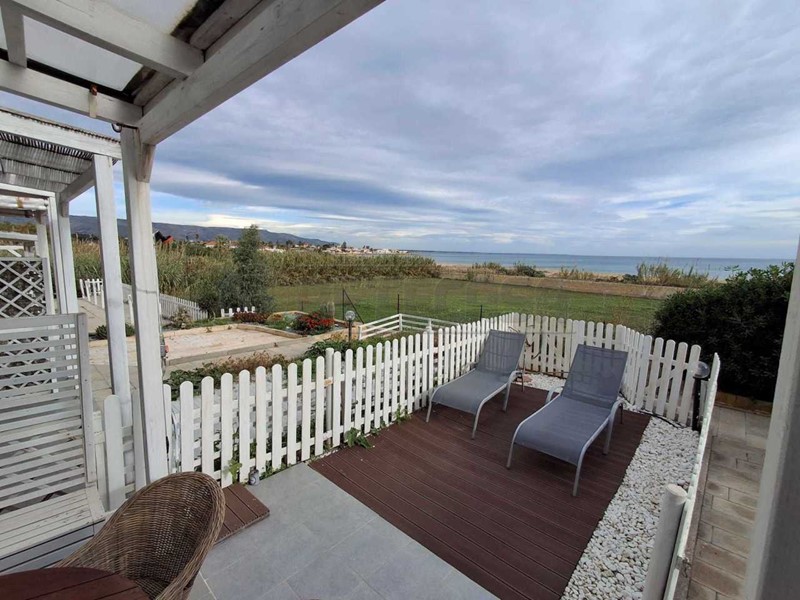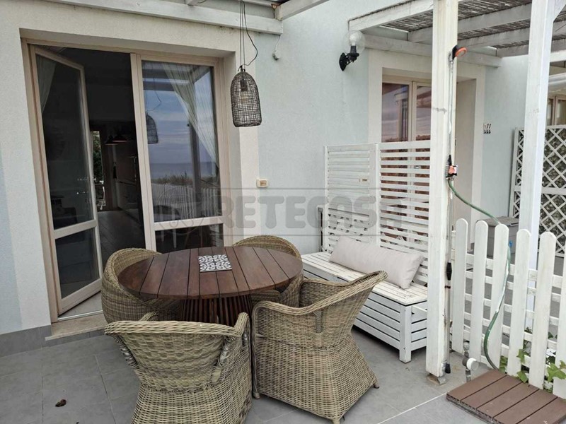 Retecasa propone zona Calabernardo villetta a schiera con affaccio sul mare e due verande, una vista mare e l'altra riservata sull'altro lato, con barbecue e altro tavolo con sedie. Questa proprietà, disposta su due livelli per un totale di 75 mq, si trova in un contesto elegante di villette, ed è arredata con mobili nuovi del 2018. Al piano terra troviamo una cucina a vista e bagno finestrato con doccia.