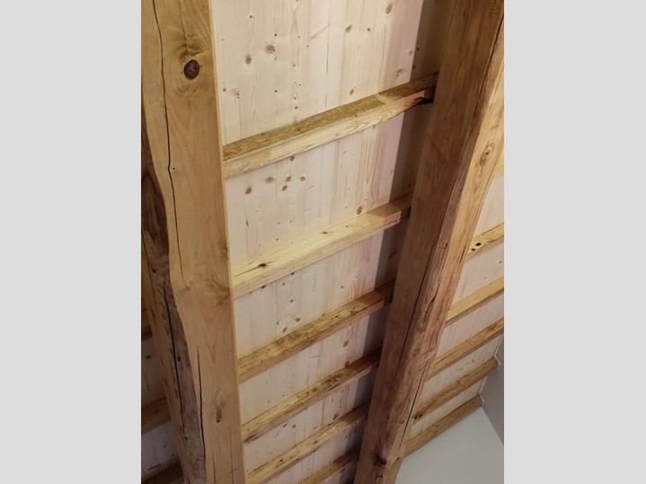 L'appartamento è composto da tre vani: una cucina abitabile caratterizzata da doppie finestre che garantiscono luminosità, due camere da letto, un bagno al piano ammezzato e un pratico ripostiglio soprascala.