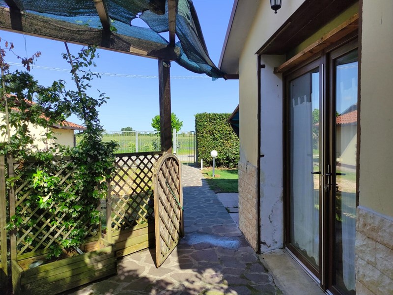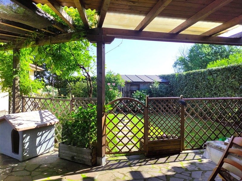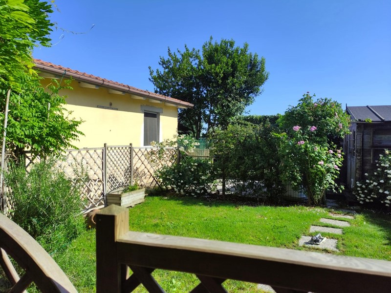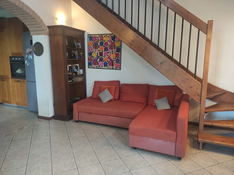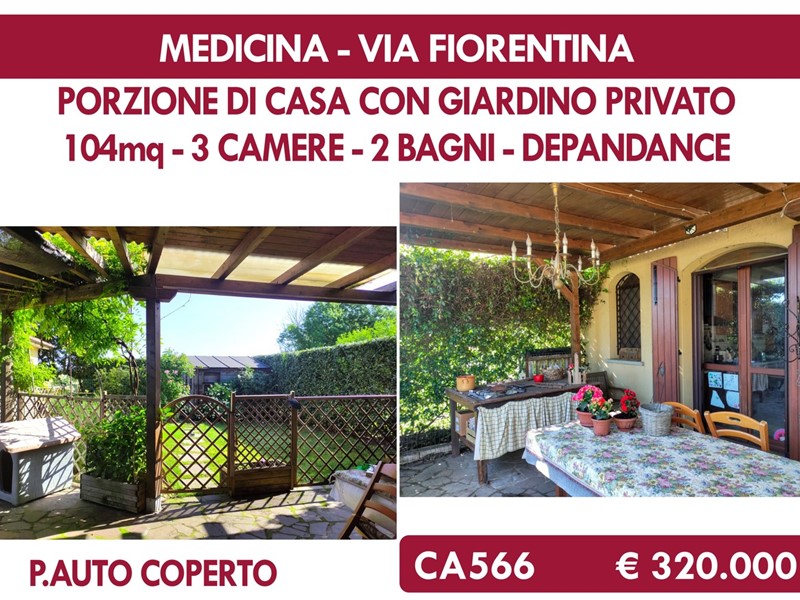 Medicina - Via Fiorentina: a pochi km dal centro del paese porzione di casa con corte privata, distribuita su tre livelli per complessivi 104mq. Al piano terra soggiorno e cucina a vista con uscita sul giardino, bagno. Al primo piano camera matrimoniale con doppio volume e soppalco, camera singola, secondo bagno. Al piano sottotetto, raggiungibile con scala a chiocciola, terzo vano con lucernario utilizzabile come camera ospiti e cabina armadio. All'interno della corte privata si trova una depandance di circa 33mq, una veranda, un pergolato, ed un ampio posto auto coperto. Rif. CA566 Euro 320.000