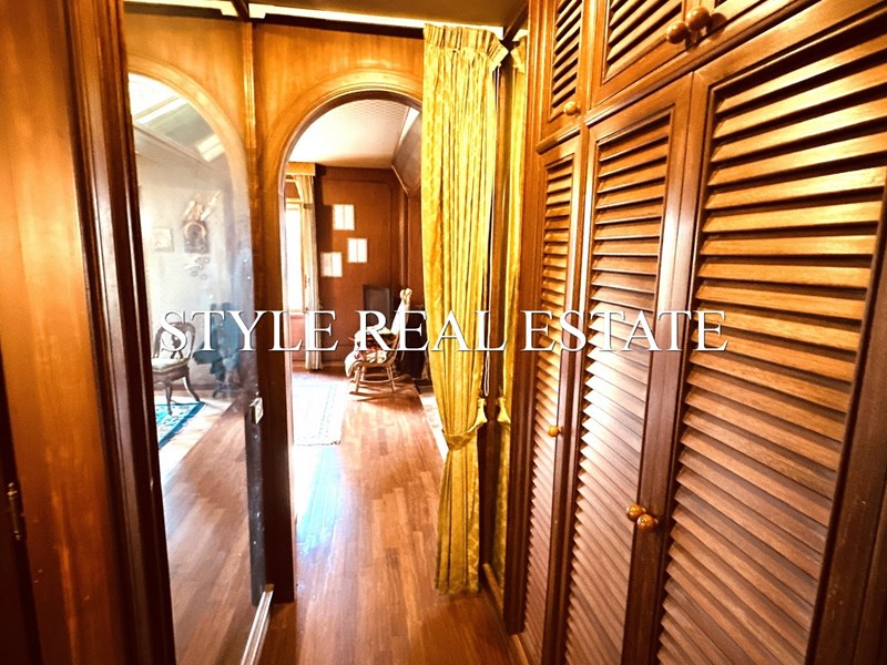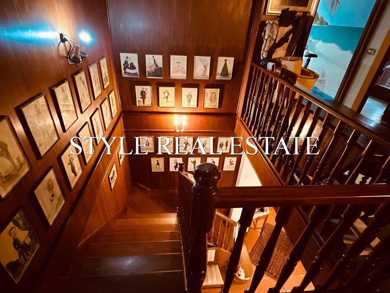 Direttamente dal salone è possibile accedere al primo piano tramite un'elegante scala in legno. Questo è composto da cucina, salone, tre camere matrimoniali, di cui una suite con bagno privato ed altro bagno. Questo piano è invece servito da due comodi balconi con vista sul giardino.