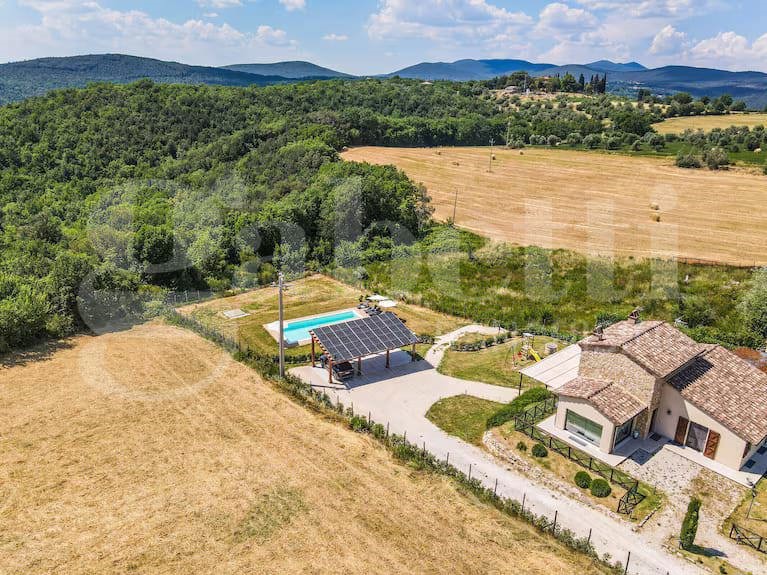 Questa proprietà, vanta la massima classificazione energetica, con pannelli solari da 10 kW, una colonnina di ricarica per auto elettriche e due batterie di accumulo. Approfittate della pompa di calore per un riscaldamento efficiente e del sistema di controllo da remoto per gestire il comfort della vostra casa ovunque vi troviate.