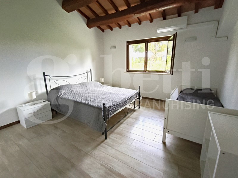 Disposta su due livelli, al piano terra ti accoglie un luminoso soggiorno con sala da pranzo, una cucina funzionale e tre camere da letto matrimoniali, tra cui una con bagno privato. Un secondo bagno completa il piano.