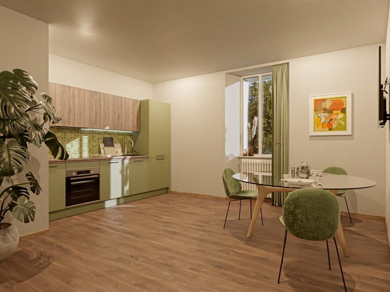 In residence oggetto di completo restauro proponiamo appartamento di circa 75 mq, con 150mq di giardino, posto al piano terra di un più ampio fabbricato, composto da soggiorno con angolo cottura, camera matrimoniale, cameretta e bagno con doccia e finestra, oltre al ripostiglio. Dotato di ingresso indipendente, tecnologie costruttive di ultima generazione (l'obbiettivo è quello di classificarlo dal punto di vista energetico in categ. A) e rifiniture di livello alto. E' prevista la consegna a primavera 2025 e si possono concordare detrazioni fiscali. Precisiamo che le misure riportate in planimetria sono approssimate e puramente indicative.