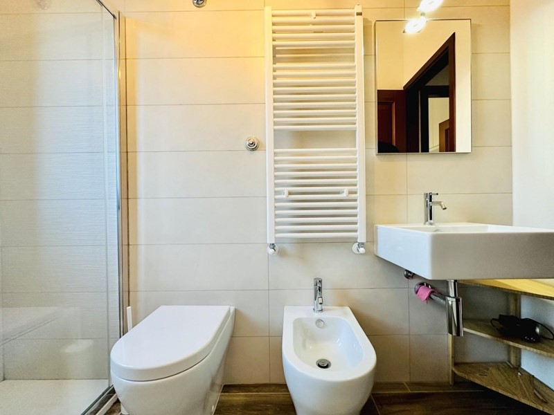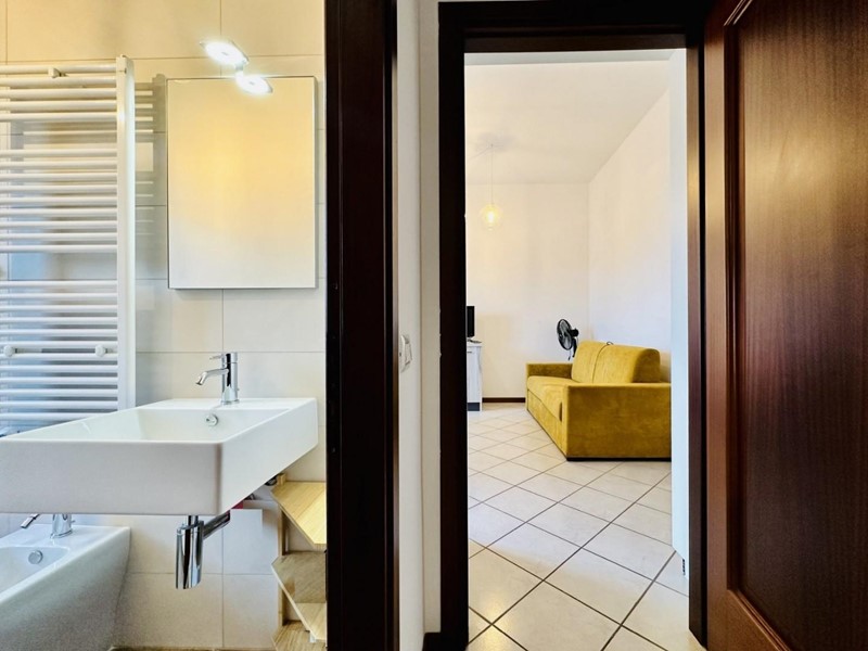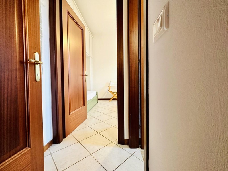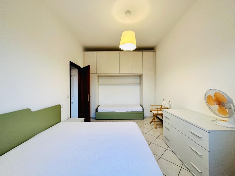 L'appartamento è servito da ascensore. L'ingresso all'alloggio avviene direttamente nella zona giorno suddiviso in soggiorno living con angolo cottura (e divano letto per 1pax). Attraverso la porta finestra della zona giorno si fuoriesce sul balcone dal quale è possibile apprezzare una piacevole vista sul mare. Percorrendo il corridoio si raggiunge la camera matrimoniale dove trova posto anche un letto singolo oltre ad un bagno con la doccia.