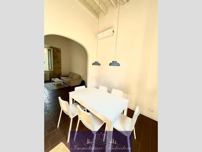 La casa si compone di un comodo ingresso con armadiatura da cui si accede alla zona living con affacci sul Giardino dei Rucellai. Il soggiorno è in diretta comunicazione con la sala da pranzo. La cucina, separata e indipendente, ad oggi risulta aperta sulla sala da pranzo ma con la possibilità di chiuderla con porta. Dal disimpegno si accede alle due camere da letto matrimoniali e al bagno finestrato. Completa la proprietà un ampio vano ripostiglio/lavanderia ed un balcone.