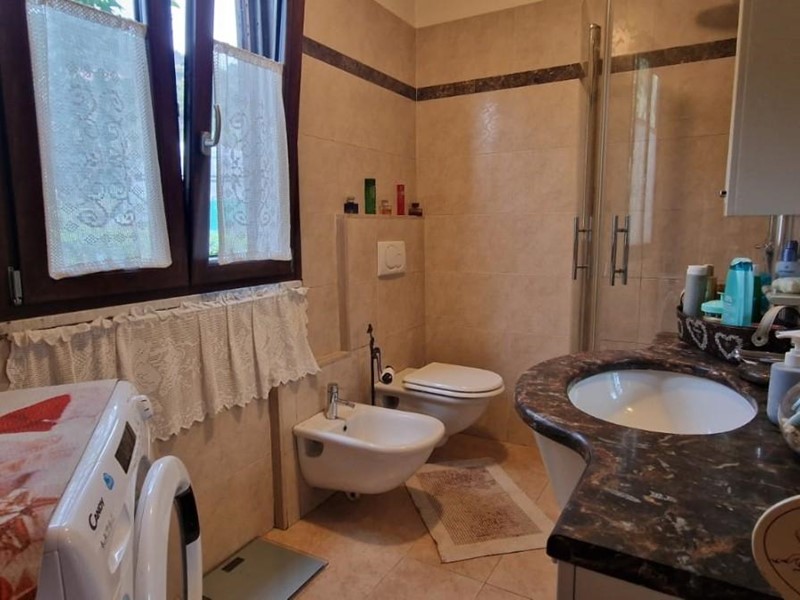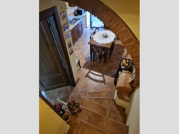 La casa è in ottime condizioni e offre tutto il necessario per viverci comodamente fruttando lo spazio esterno per cene estive all' aperto e anche per 2 famiglie che vogliono vivere nello stesso fabbricato. La casa infatti ha un doppio accesso e attrezzata per 2 abitazioni, una al piano terra (taverna fuori terra ) e una al piano primo da cui si accede esternamente da una ampia terrazza. Al piano terra: cucina abitabile aperta su un soggiorno, 2 camere, bagno, giardino di circa 300 mq.e ampia cantina , scala anche interna per accedere al piano primo dove troviamo una sala, cucina abiatbile, 2 camere, bagno.