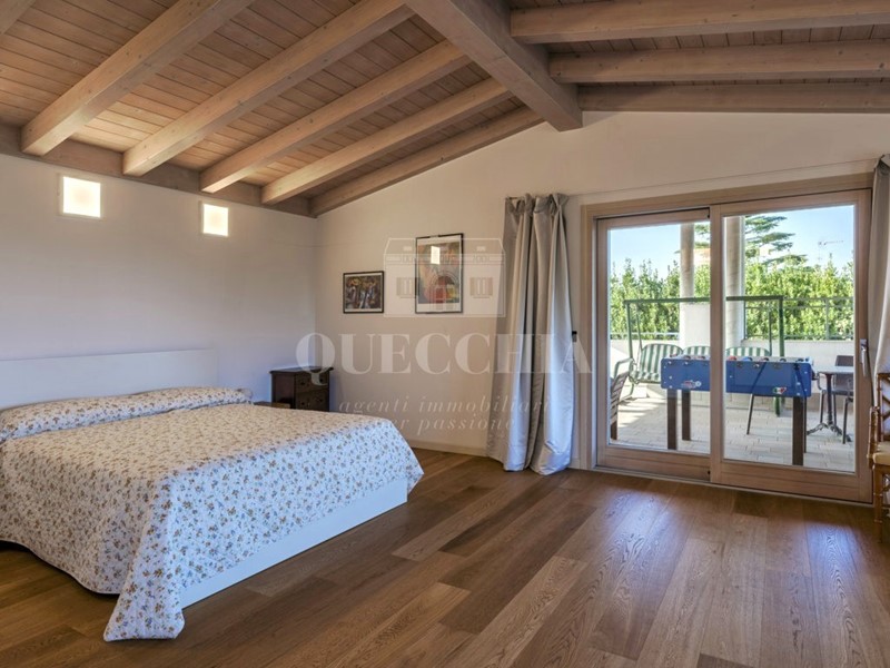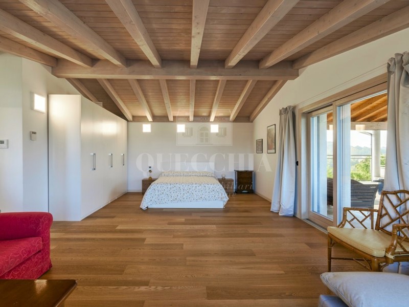 Il piano superiore è dedicato ad una vera suite padonale: 30 mq di camera, bagno esclusivo e loggia panoramica di oltre 40 mq.