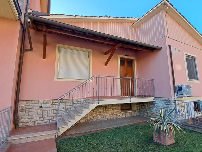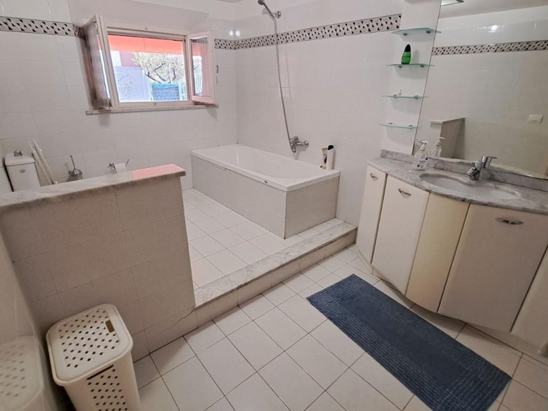 NOSTRA NUOVA ESCLUSIVA Rosignano S. a 1500 mt dal Mare in Villetta quadrifamiliare vendiamo porzione Terra-Tetto su 2 livelli piano rialzato a tetto e piano terra/seminterrato in perfette condizioni composta da: ingresso indipendente al giardino sul fronte della casa al piano rialzato terrazzo- ingresso ampio- cucina soggiorno attualmente adibita a grande camera matrimoniale con predisposizione per cucina- ingresso zona notte- 2 camere -bagno con doccia- comoda scala interna che conduce al piano terra-seminterrato con altra possibile camera attualmente adibita a cucina abitabile - ingresso con ripostiglio- secondo ampio bagno e grande taverna con camino e comodo accesso diretto alla seconda porzione godibile di giardino. Adiacente al giardino abbiamo una corte esclusiva per parcheggio di due auto . Termo autonomo a metano . No Condominio-