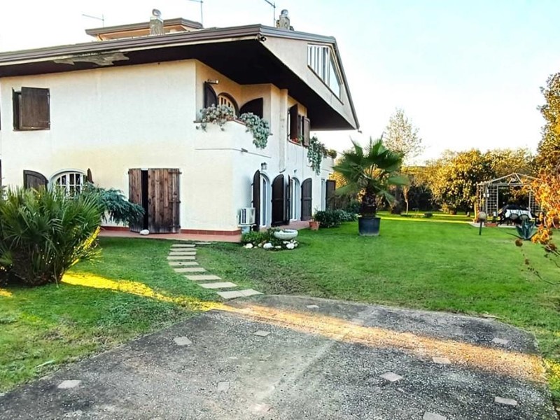 CINQUALE - A poco piu' di 1500 metri dalla spiaggia, in un contesto paesaggistico unico, si propone in vendita una splendida villa con una superficie di circa 480 mq. La villa, situata in una zona tranquilla e riservata, è circondata da un ampio parco di circa 3000 mq. La proprietà è disposta su tre livelli e al piano primo troviamo l'unità padronale con ampio e luminoso soggiorno, con uscita su terrazza pranzabile, cucina abitabile, disimpegno, due camere matrimoniali con relativi servizi e bagno. Al piano superiore accessibile tramite bellissima e comoda scala, troviamo il piano mansardato con ulteriore soggiorno e camino, camera matrimoniali, bagno e terrazze. Al piano terra abbiamo un piccolo appartamento composto da ingresso, soggiorno con angolo cottura, camera matrimoniale ,bagno e cantina.